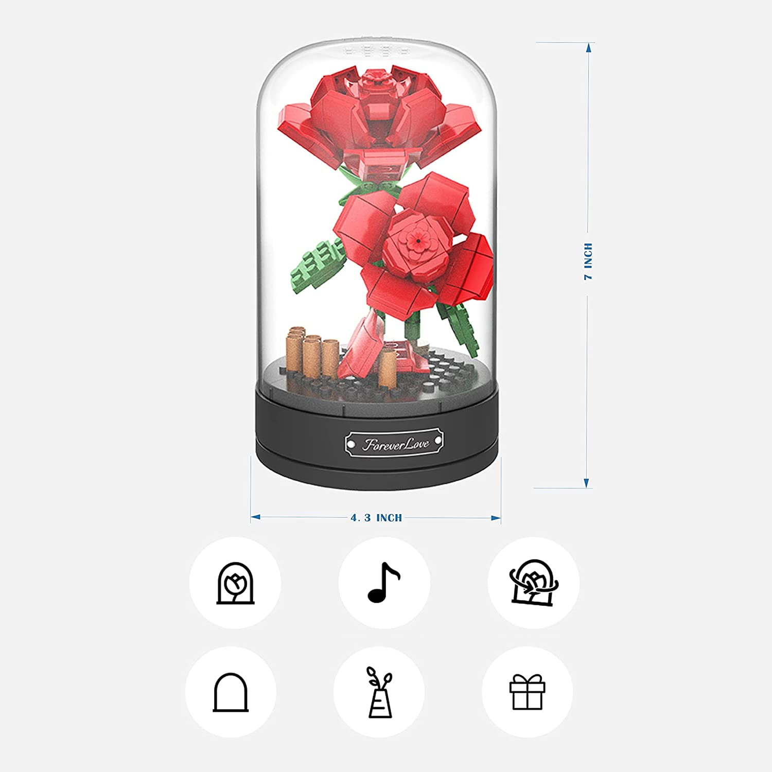 Jnnp Flower Bouquet Building Blocks Music Box Red Rose With Dome Artificial Flowers Building Project To Release Stress And Focus The Mind Valentine S Day Anniversary Birthday Gift Walmart Com